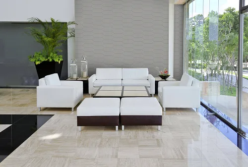 The living room is often the heart of the home, where first impressions are formed. Using 3D tiles on a feature wall instantly draws attention. Its subtle texture adds depth without overpowering the room.